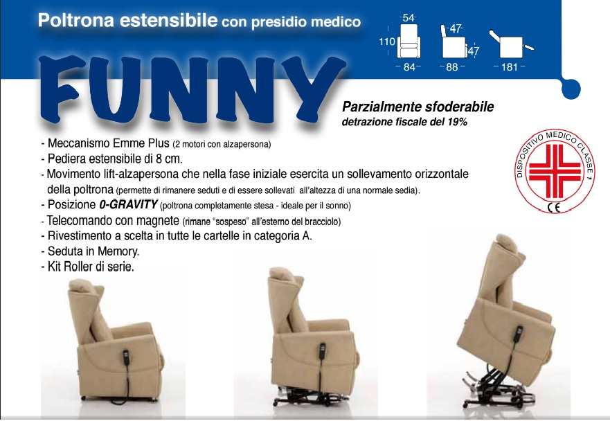 Hai la possibilità di acquistare con tutta serenità le poltrone motorizzate per anziani o disabili con presidio medico certificato che ti permettono di usufruire di uno sgravio fiscale del 19%.